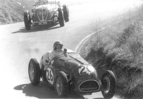 Im Frühjahr 1993 machte die Fastforword Music LTD. aus Suffolk/England in Australien Filmaufnahmen von eindrucksvollen klassischen Fahrzeugen. Hier ist Paul Samuels am Steuer von OPA2. Paul berichtete, daß der Journalist von dem offenen Fahren mit dem Feeling des Rennwagens so angetan war, daß er nicht mehr aussteigen wollte.